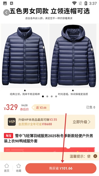 在商品详情页找到标有【购买省¥101.66】的按钮并点击,接着完成该商品的购买流程。
