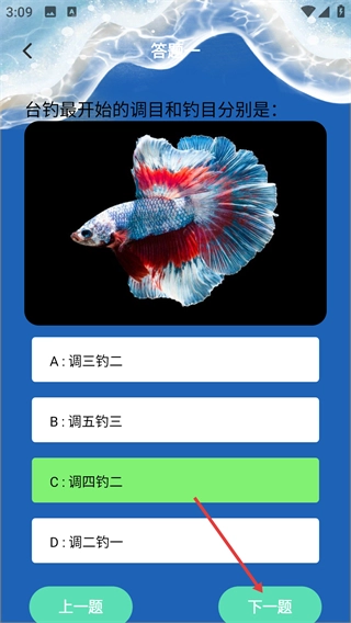点击【下一题】按钮,继续进行答题,从而完成钓鱼知识问答的操作。
