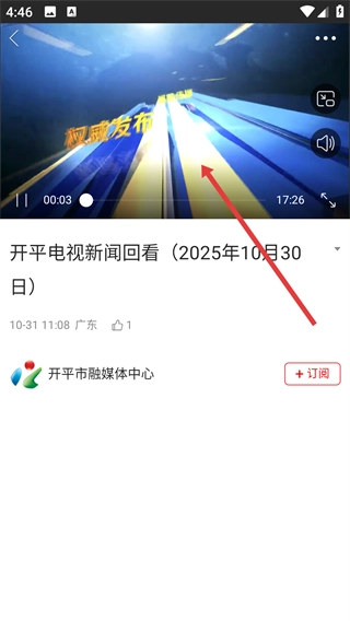 进入后即可播放该条开平电视新闻,查看新闻内容。