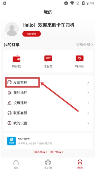 进入“我的”页面后,找到【发票管理】选项并点击进入。
