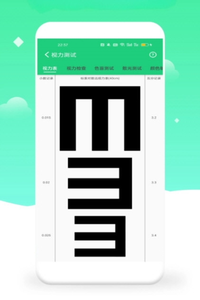 视力体检:包含了视力表、视力检查、色盲测试、散光测试以及颜色敏感度等多种视力相关检测。