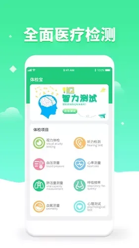 体检视力测试这款应用程序,集成了多项体检功能,包含视力、听力、血压、心率等多个维度。用户借助手机,便能轻松完成各项自我健康检查,进而更全面地知晓自身身体状况。无论身处家中,还是外出旅行,只要拥有一部手机,即可完成一系列专业的体检项目。以下为该应用的主要功能特性: