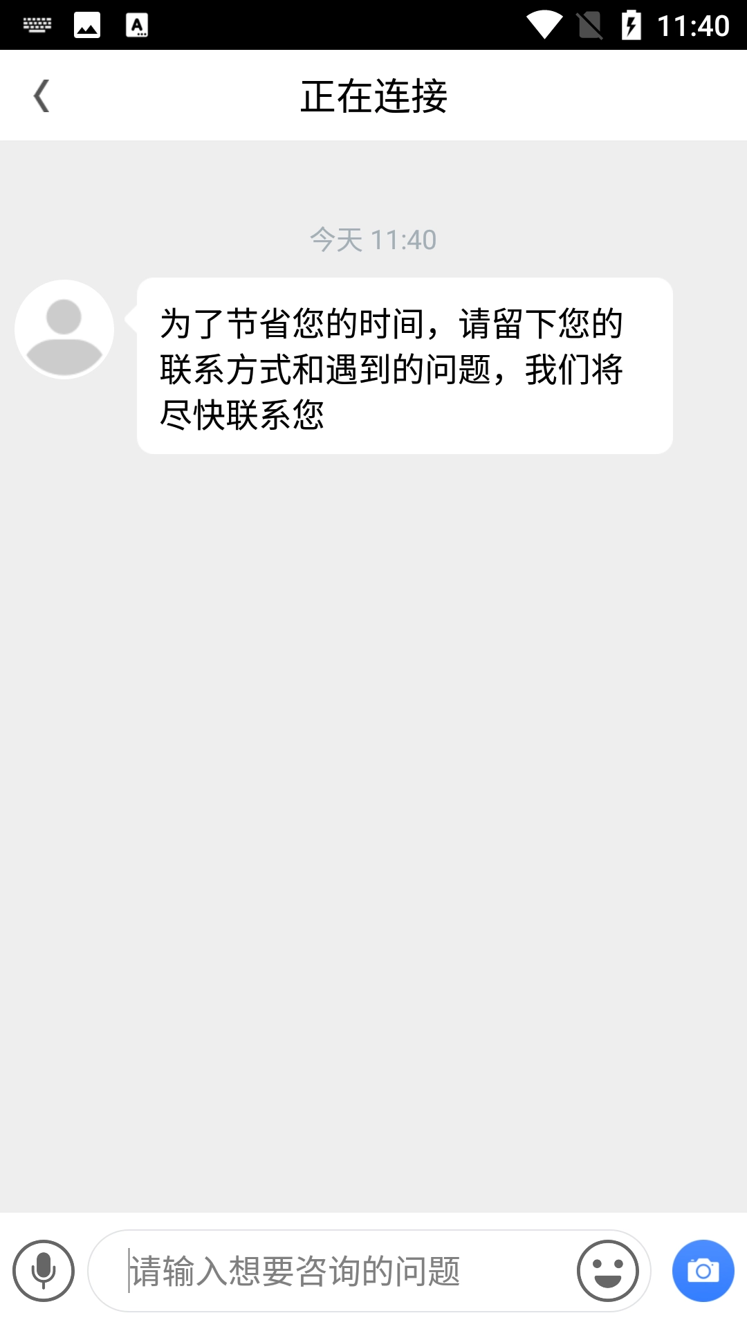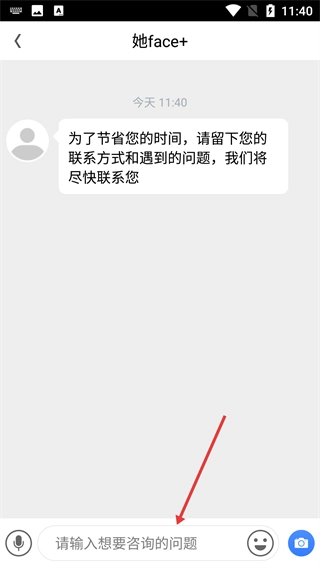 在登录页面点击输入框,进入咨询输入页面。