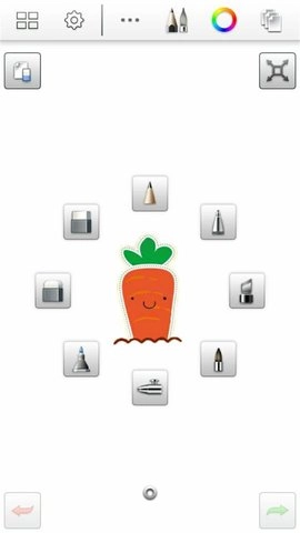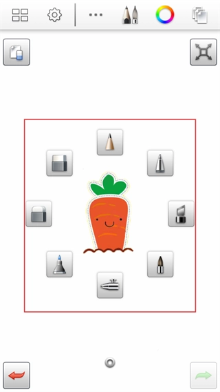 在绘图界面中,你可以围绕当前的绘制对象(比如示例里的胡萝卜),从周边的快捷工具栏里挑选合适的笔刷样式,完成切换后就能直接用对应的笔触来进行绘制了。