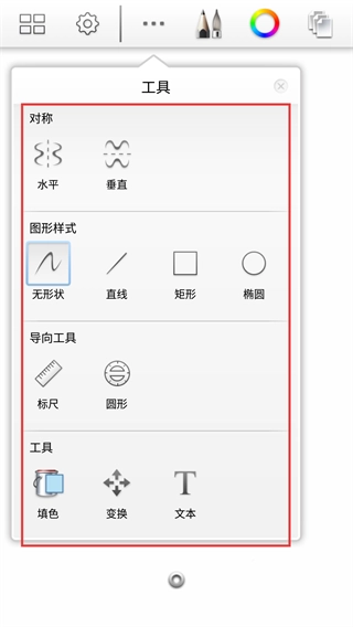 打开工具面板后,你可以借助【对称-水平/垂直】功能来辅助绘图,也能选择【图形样式-直线/矩形/椭圆】绘制基础图形。