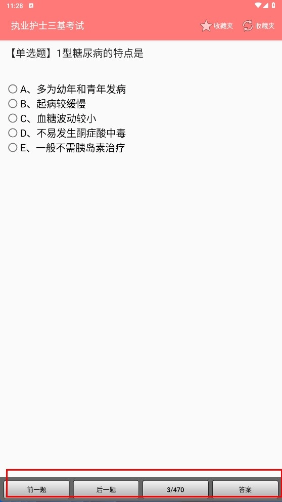 在解答“1型糖尿病特点”这道题目时,正确选项为A(多在幼年及青年时期发病)。你可以借助页面底部的“前一题”“后一题”以及“答案”按钮,来切换不同题目并核对相应答案,以此进行系统的备考复习。