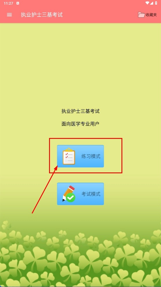 点击【练习模式】,即可进入执业护士三基考试的练习界面,该界面主要面向医学专业用户,助力其开启备考之旅。