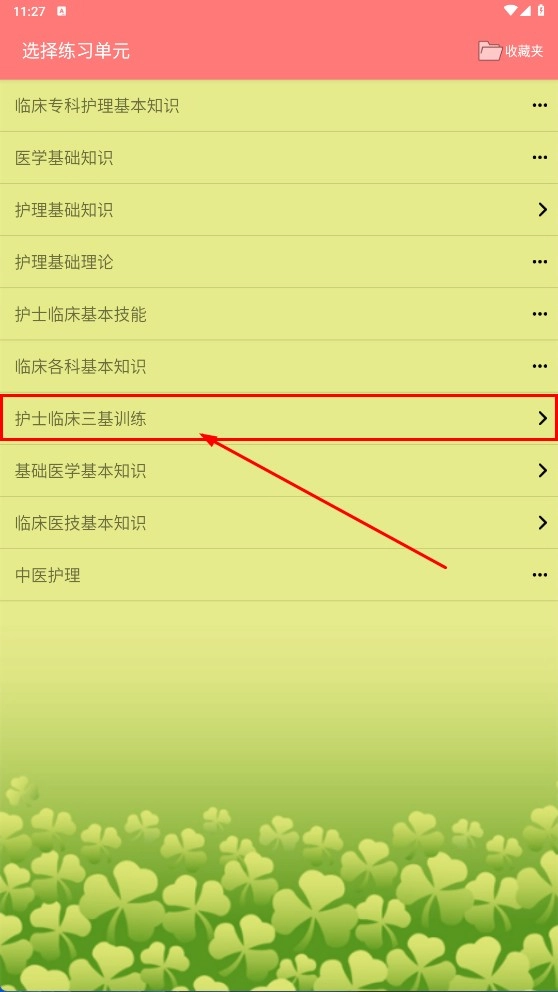 选择【护士临床三基训练】这一单元,来开展临床护理三基知识的针对性练习。
