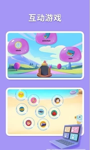 2、游戏化互动学习:通过互动游戏,让孩子在玩乐中自然习得英语,提高学习积极性和参与度。