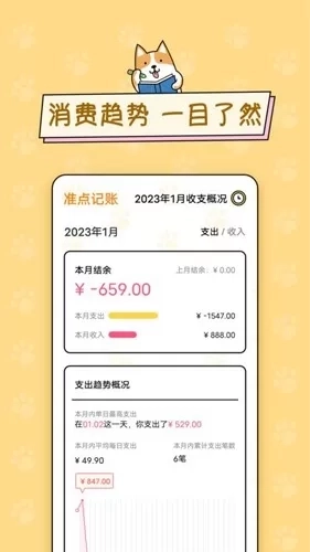 消费趋势洞察:借助清晰直观的图表,能助您迅速剖析消费状况,清楚知晓每一笔钱的去向。