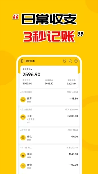 1、极简的记账流程,快速完成每一笔账单;