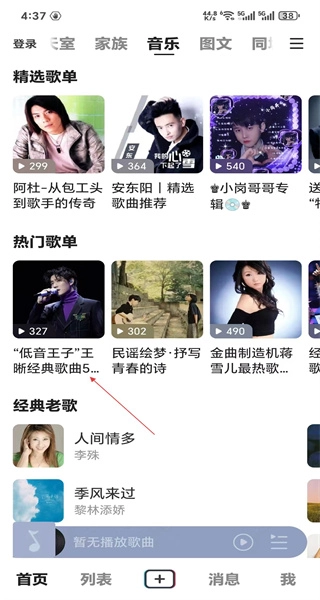 打开软件后,进入首页,找到热门歌单板块,从中选择“低音王子王晰经典歌曲”歌单,点击进入该歌单的详情页面。