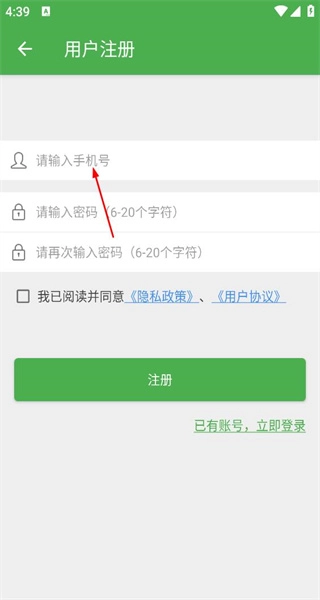 进入用户注册页面,填写手机号、设置密码等相关信息,完成该软件的账号注册流程。