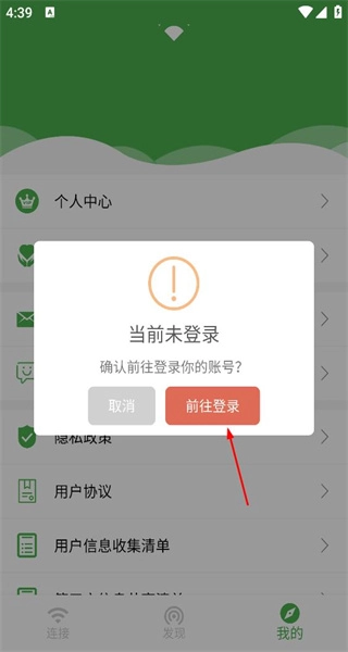 在个人功能页面里,找到个人中心这个选项,点击它之后,就会弹出登录提示的窗口。