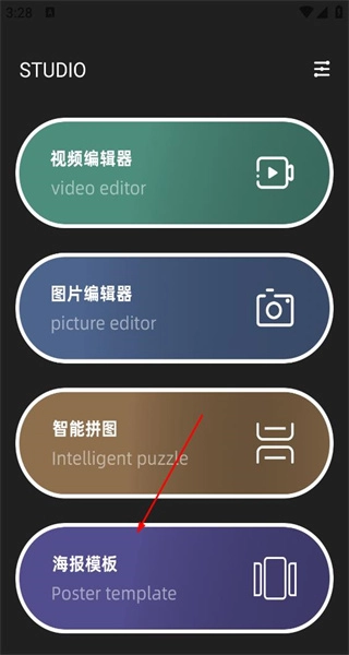 在功能选择页面,设有多个编辑功能选项,点击“海报模板”选项后,即可进入模板选择界面。