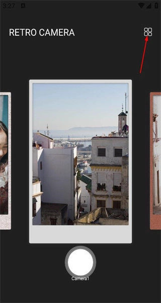 打开软件后,进入主界面,这里会展示多张复古风格的照片。接着,点击界面右上角的功能入口,就能进入功能选择页面。