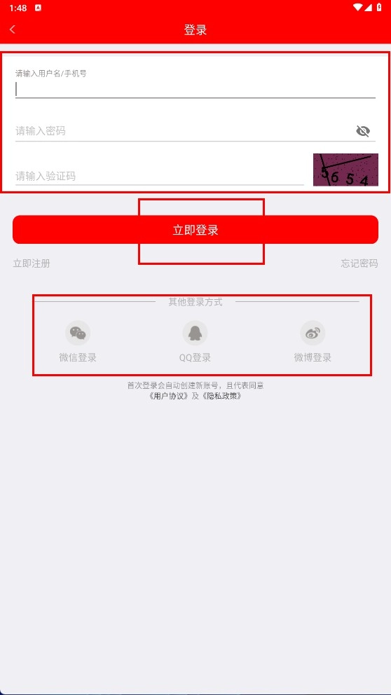 选择登录时,既可以输入用户名/手机号、密码和验证码,然后点击【立即登录】;也能够选择微信、QQ、微博等其他登录方式。