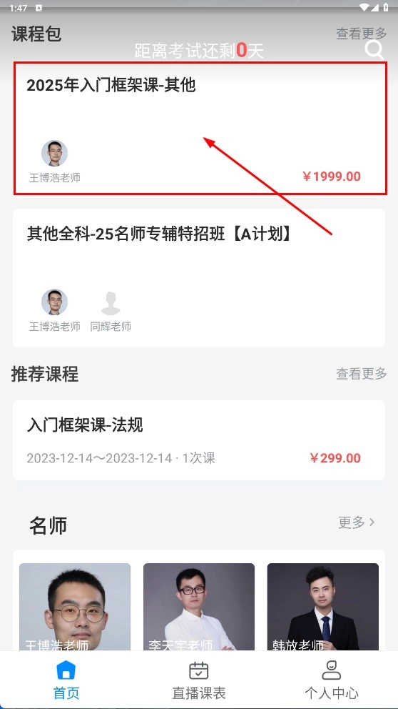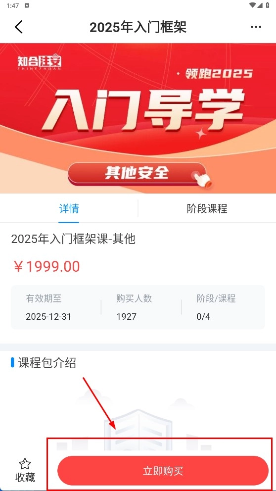 在课程包板块,点击【2025年入门框架课-其他】的课程卡片,即可进入该课程的详情页面。