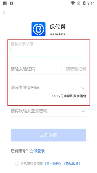 注册页面需按顺序填写【手机号】,接着获取并输入【验证码】,再设置由6至12位字母与数字组合而成的【登录密码】,全部完成后就能提交注册申请。