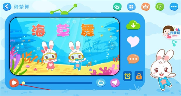 返回儿歌列表,点击海草舞的入口,就能进入这首儿歌的播放界面,这个界面的布局和上学歌的播放界面是类似的。