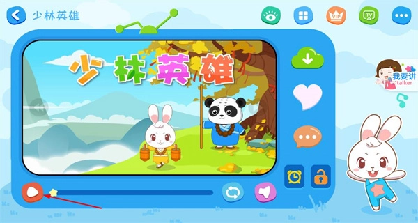 在《少林英雄》的播放界面中,点击左下角的播放按钮,就能启动这首儿歌的播放,此时界面会展示与该儿歌相关的画面以及各类功能按钮。