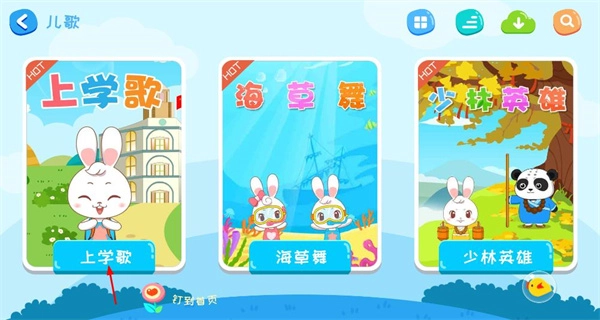 打开软件后,进入儿歌界面,找到并点击“上学歌”的入口,即可进入该儿歌的播放界面。