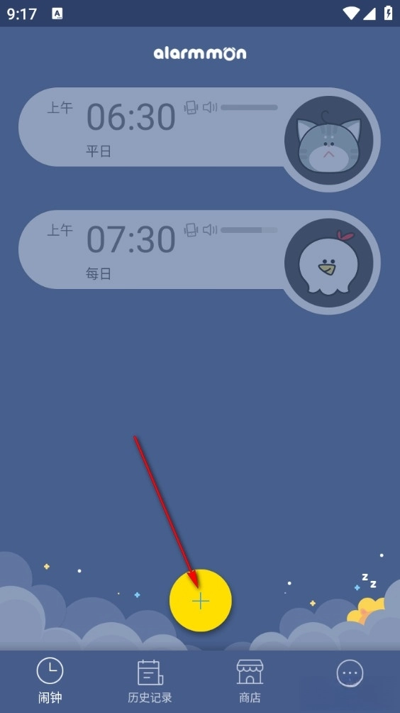 打开软件后点击下方加号添加闹钟