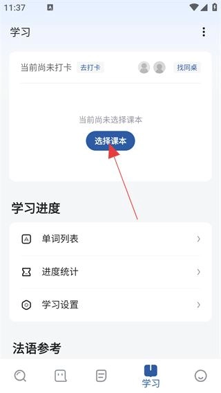 在学习页面,点击【选择课本】。