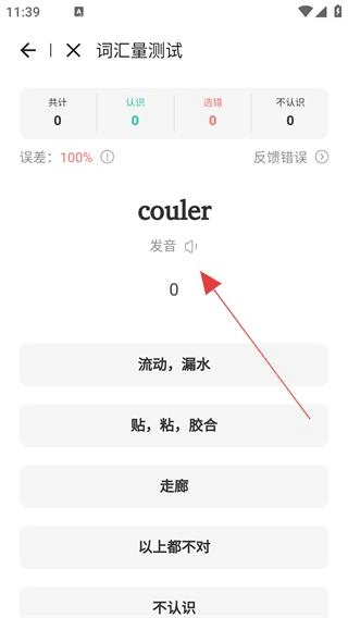 在词汇量测试页面,你可以查看单词【couler】,接着挑选出正确的含义。