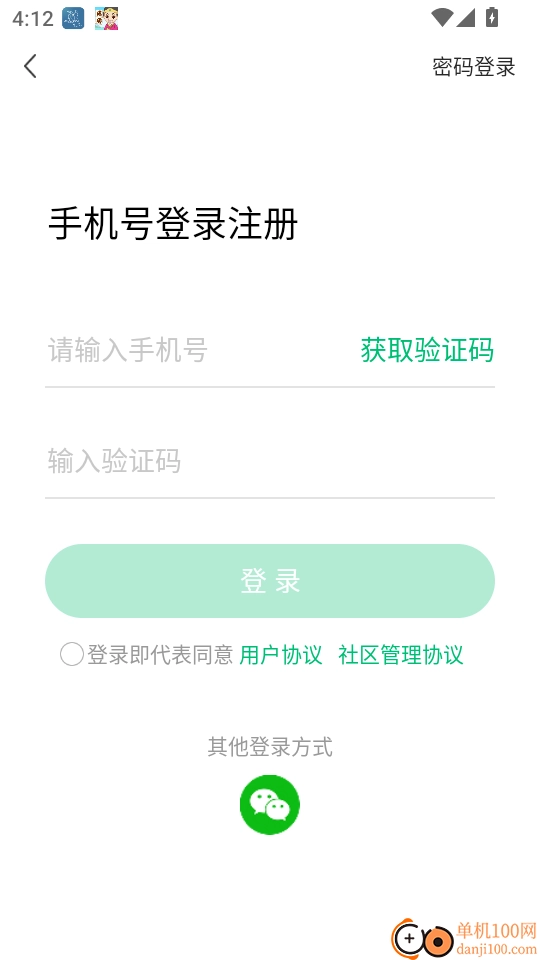 在手机号登录注册页面,输入手机号和验证码后,点击“登录”按钮即可进入程序。