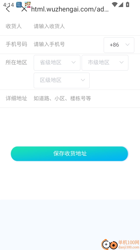最后输入收货人姓名、手机号码、所在地区以及详细地址后,点击“保存收货地址”按钮,即可完成操作。