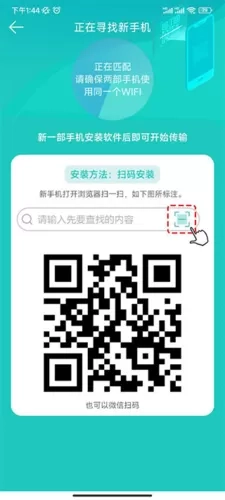 4、用新手机进行扫描二维码,但要注意的是,两部手机要使用同一个WiFi哦;