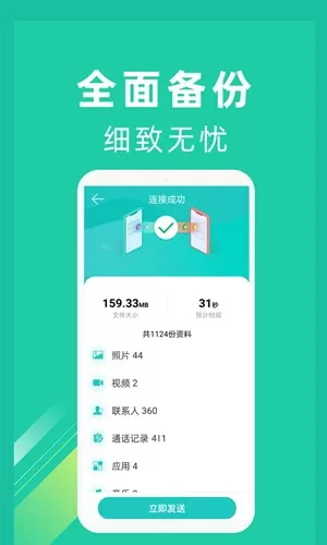 一键换机,由深圳七七五九网络科技有限公司精心打造,是一款超好用的手机备份换机软件。借助这款软件,用户能轻松把旧手机的数据迁移至新手机,无缝开启新手机的使用之旅!而且在数据传递过程中,既不耗费流量,也无需联网,哪怕是不同品牌的手机,都能实现快速隔空资料传输!要是你刚入手新手机,正为资料传输发愁,不妨试试这款软件哦!