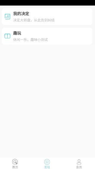 点击页面下方的“发现”按钮,就能看到“我的决定”“趣玩”等功能板块。