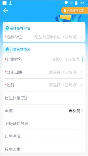 2、为适龄儿童在线接种信息进行自助建档,并同步上传全市预防接种单位信息系统