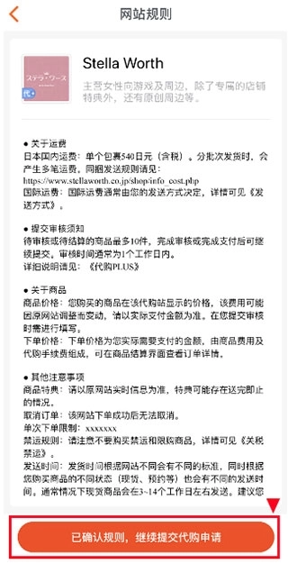 2、确认商品信息后,在商品详情页中点击“提交代购申请"。