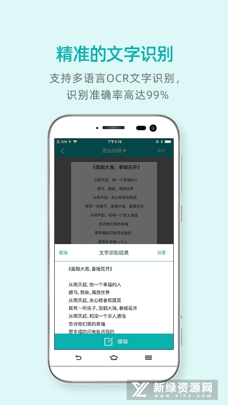 高级账户还能够把图片里的文字识别出来,并导出为可编辑、复制、保存或分享的Text文本