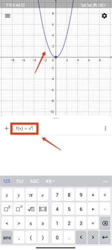 4、接着直接在加号图标右侧进行输入,这里我们输入f(x)=x²函数,输入之后可以看到图中出现了相应的图像;