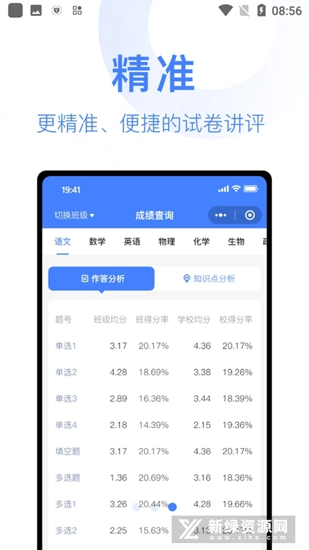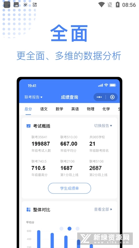 每一科的成绩都能在线查询,所有考试的概况也都有详细记录,包括参考人数、平均分等信息。2. 软件的界面设计十分简洁,各项功能划分清晰,能让用户操作起来更便捷。