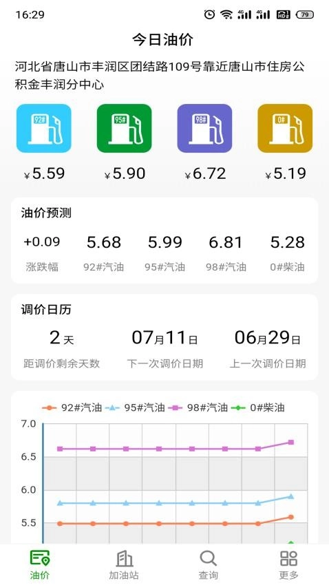 打开应用就可以在线对近期的油价行情进行查看。