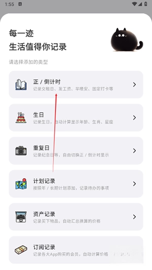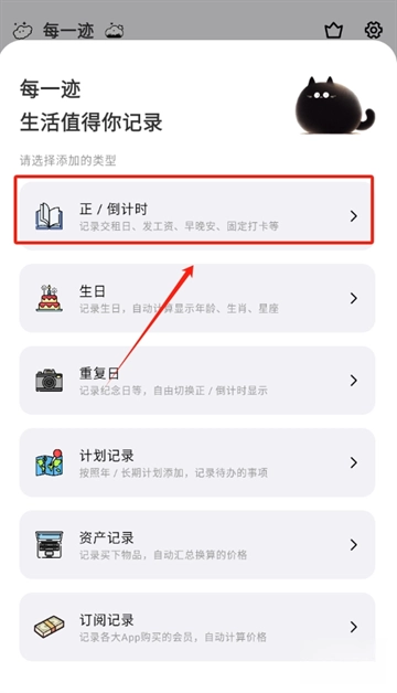 点击“+”按钮后,界面会弹出生日、纪念日、考试安排等多种倒计时类型选项。