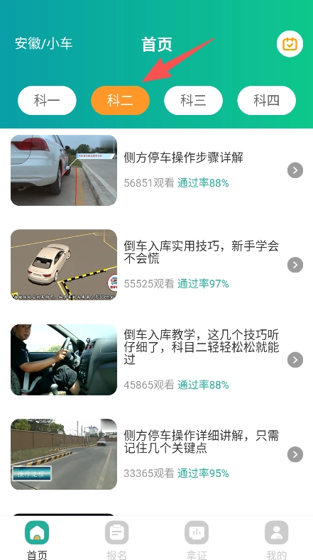实操视频教学很实用,里面讲解了侧方停车、倒车入库等实用技巧,而且视频附带高通过率的数据支撑,能让学员的学习更具针对性。