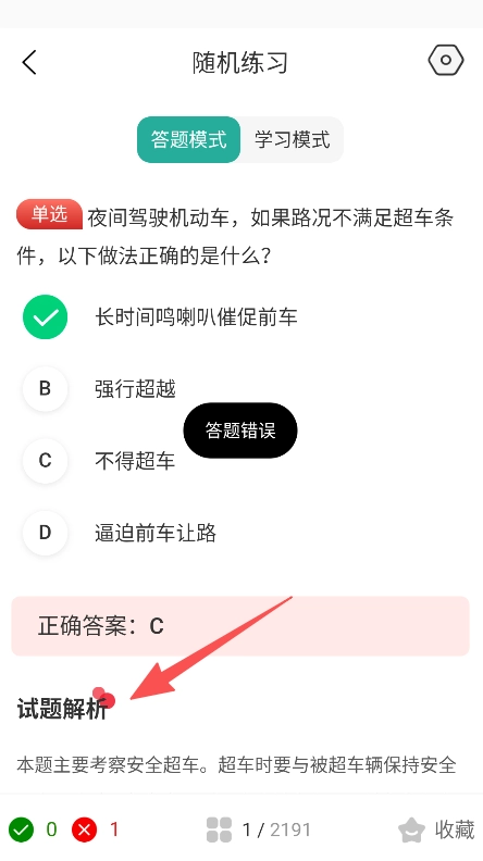 进入题库进行练习,选择随机练习模式,同时查看试题解析,以此巩固所学知识点。