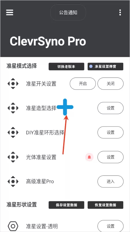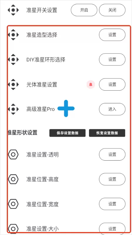 选择准星模式:返回后,用户可以选择想要开启的准星模式,如基础准星、十字准星、圆圈准星等