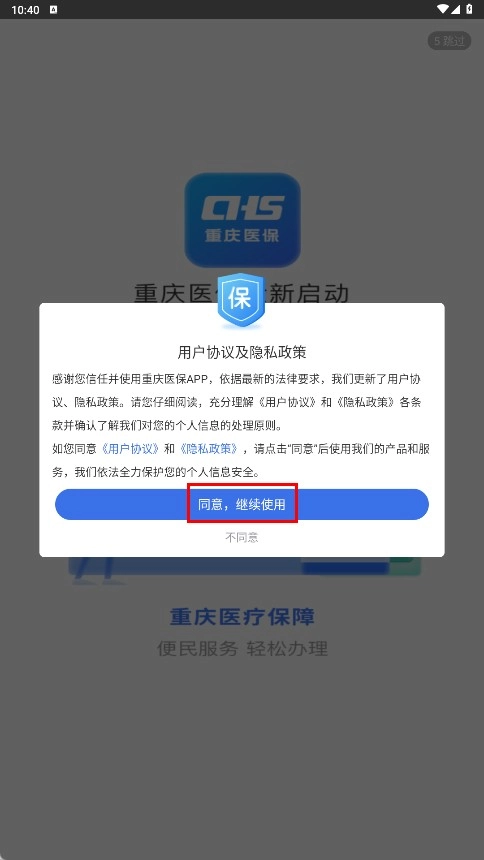 点击【同意,继续使用】功能按钮,即可进入重庆医保公共服务平台的首页。