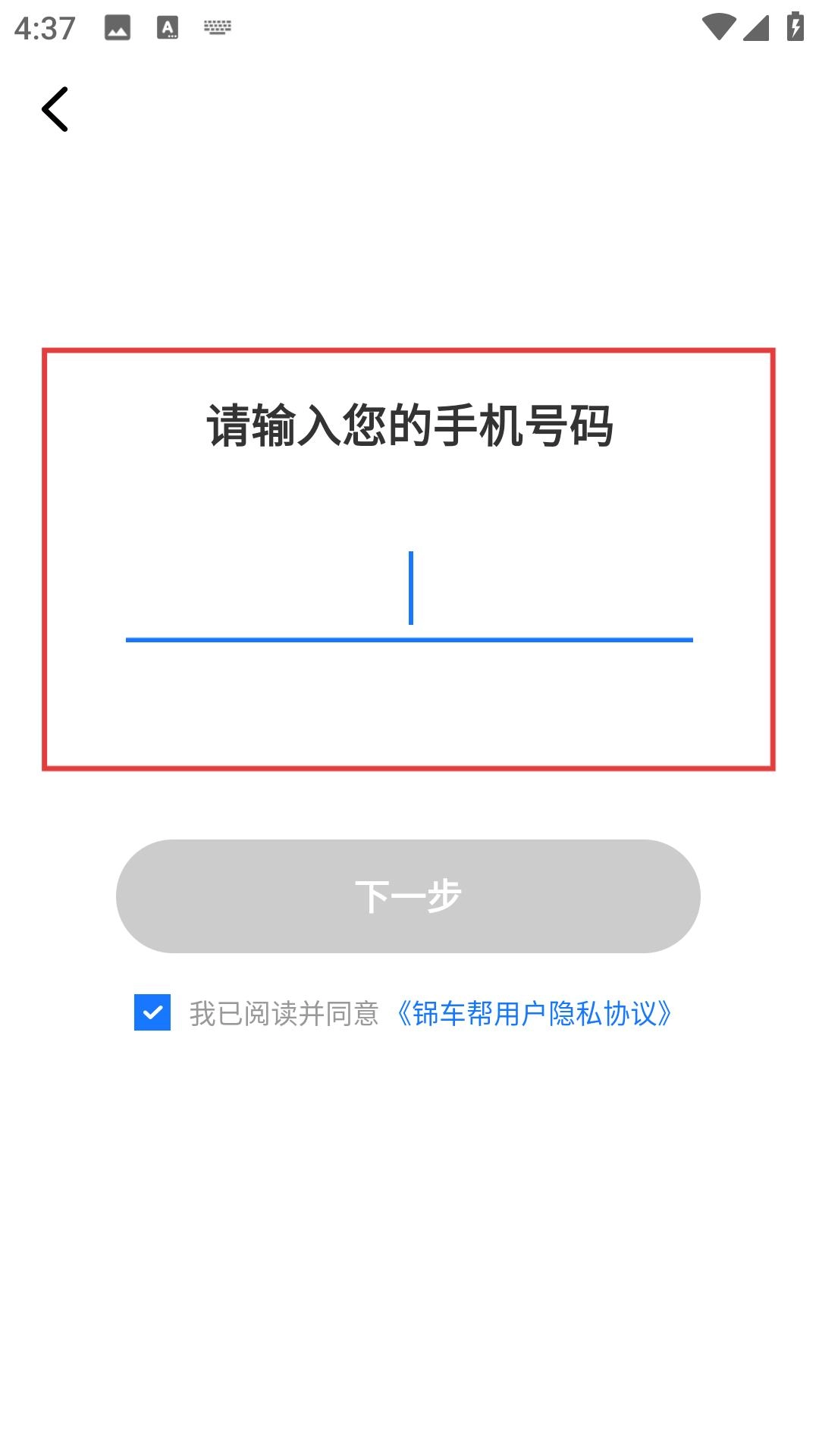 在手机号码输入页面,填写好手机号,确认勾选同意用户隐私协议后,点击【下一步】按钮,即可进入短信验证码填写界面。