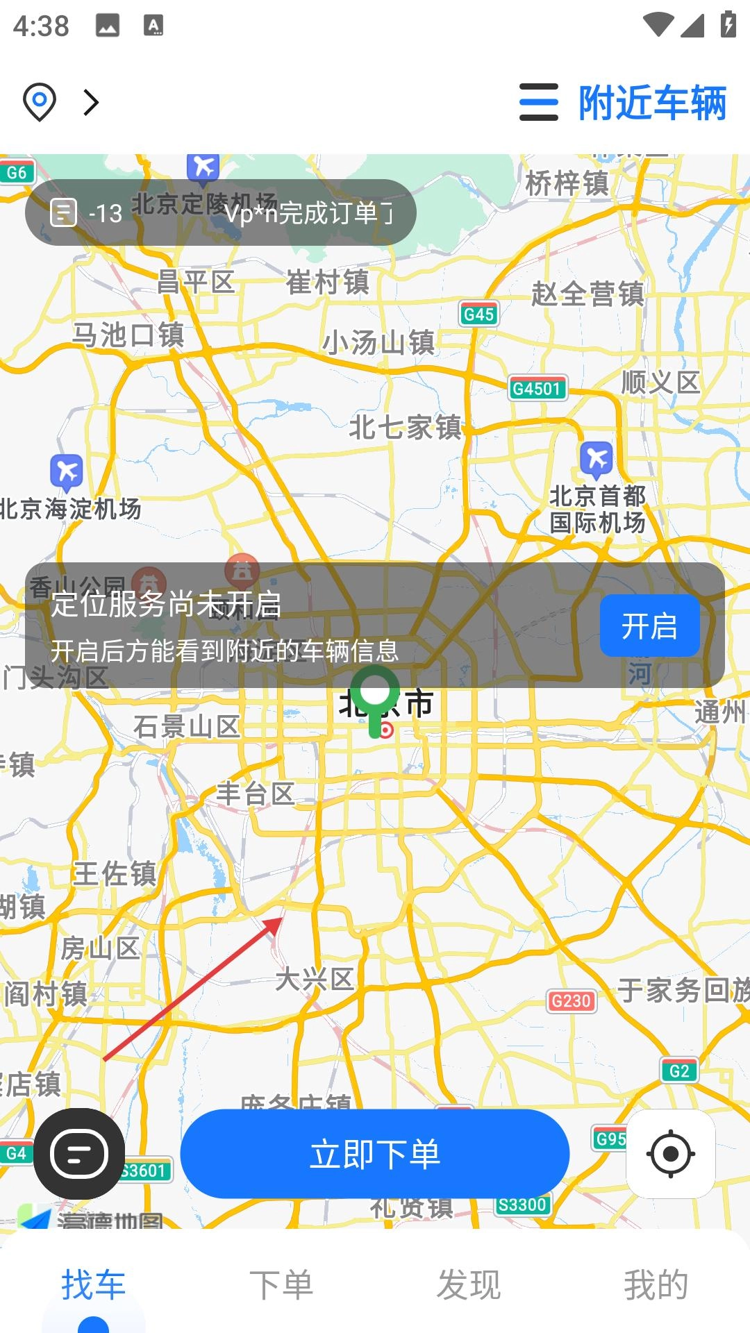 登录后进入找车界面,开启定位服务就能查看附近车辆信息,点击【立即下单】即可预定吊车,满足吊车使用需求。