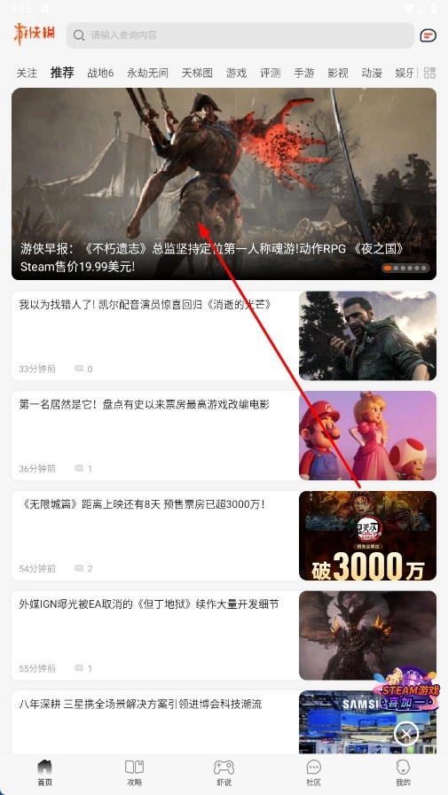 在首页找到游戏资讯板块,点击其中像《不朽遗志》这类相关资讯条目,即可浏览具体内容。