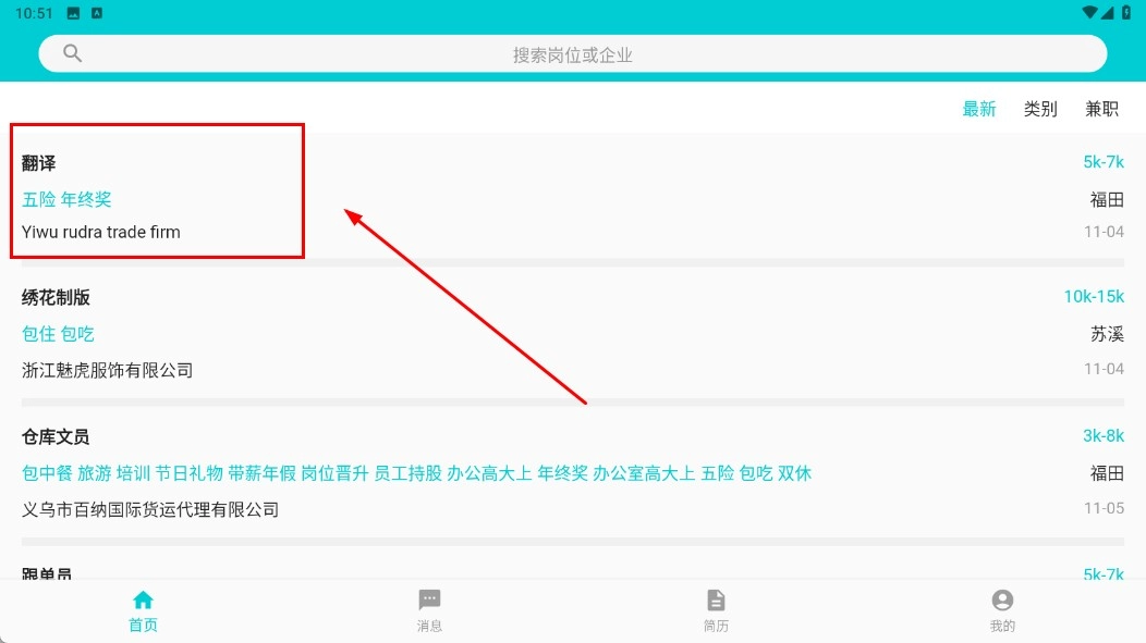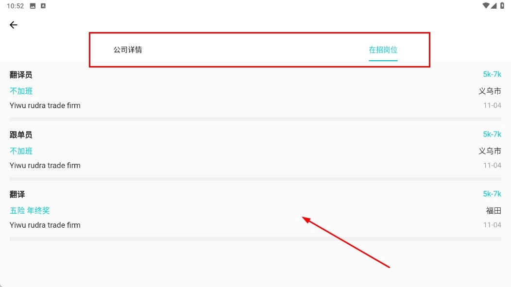 在岗位列表中找到类似【翻译-岗位条目】的选项并点击,查看该岗位所属公司正在招聘的岗位信息。