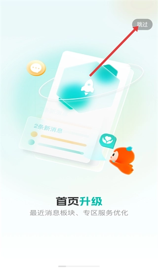 要是碰到首页的升级介绍页面,点击右上角的【跳过】按钮就能直接进入主界面。
